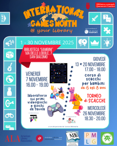 Oramai il gioco ha contagiato le biblioteche di tutto il mondo e in molte ci sono angoli dedicati a questaattività che favorisce la socializzazione, l’ingegno, l’esercizio del rispetto attraverso il divertimento. Anche la Biblioteca Gambini di San Giacomo prende parte